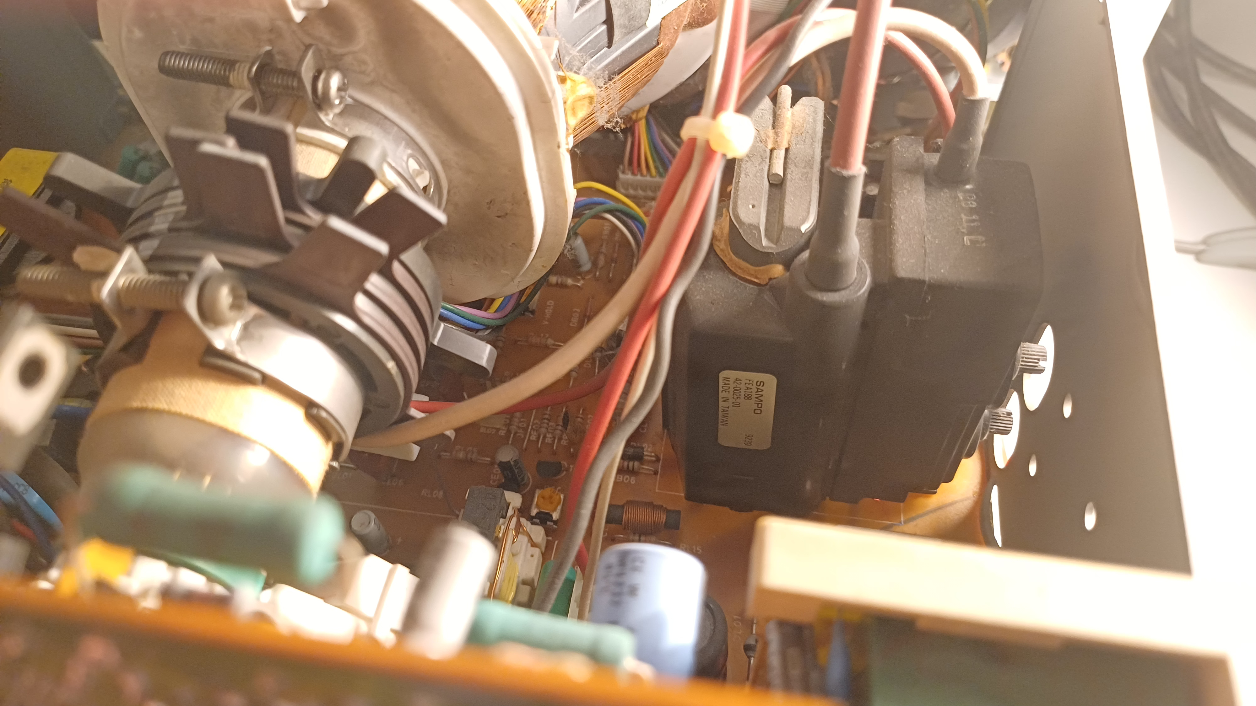 Picture Tube(s): Philips M34EAQ01X; Hitachi M34JDV13X04 Original Flyback: SAMPO FEA188 Replacement Flyback: HR7495 |