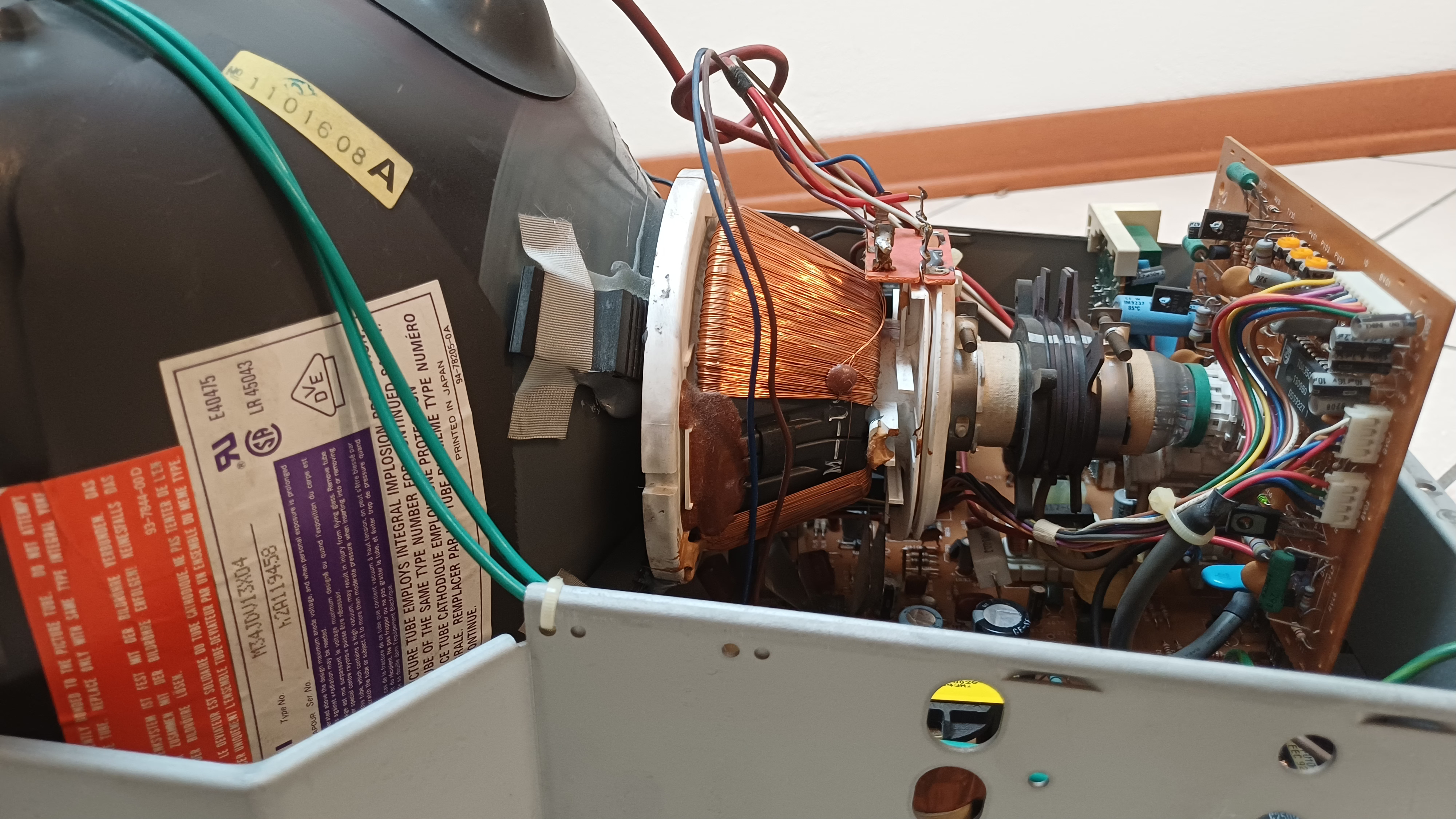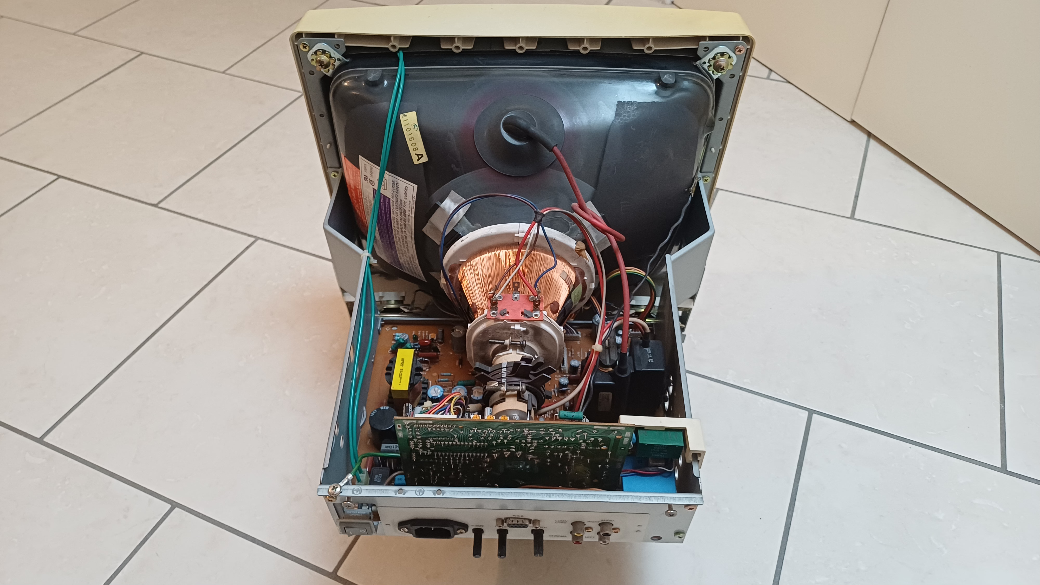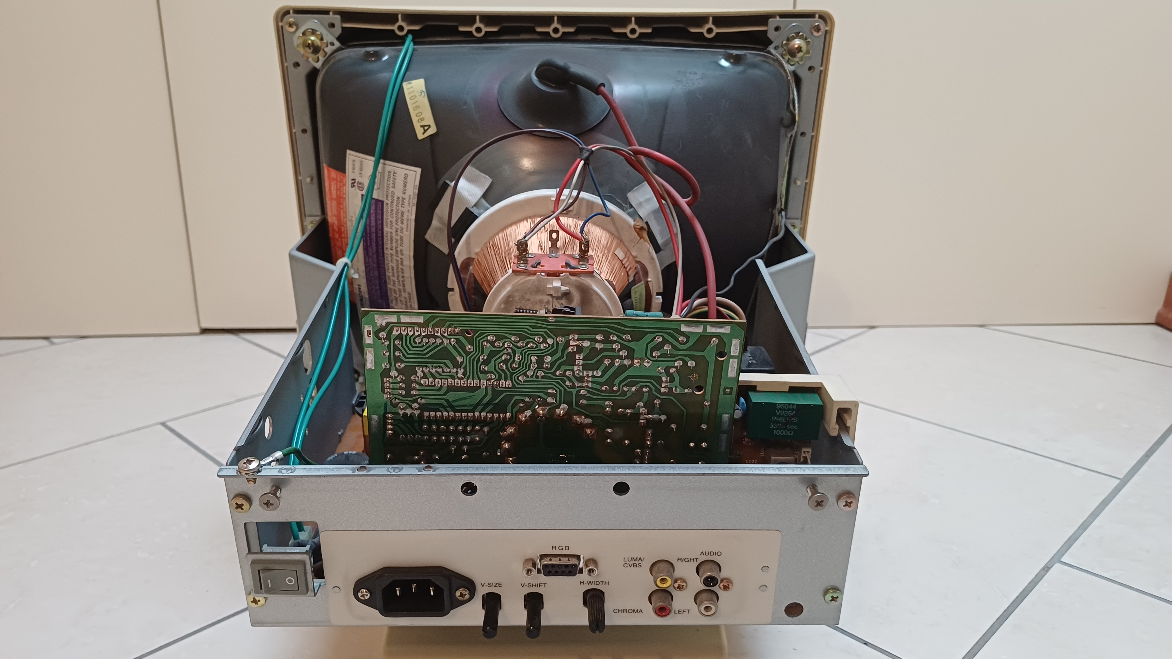 dot pitch: 0.42 mm 1: Some say on the net that the 1084ST has made by Philips. Philips have made all of its monitors in Taiwan that times but this monitor has made in Malaysia. I think it was made by Likom that company established in Malaysia in 1992: http://www.likom.com.my/ProsServ/DP/PS_DP_Capable.asp#1 (on archive.org) Inside picture More inside pictures on http://www.retrocomputer.tux.hu The Commodore 1084ST from 1992 uses Philips M34EAQ01X tube, but 1084ST (last column) from 1994/5 uses Hitachi M34JDV13X04 tube. ![]() Picture source: eBay.de ![]() ![]() Picture source: Big Book of Amiga Hardware |