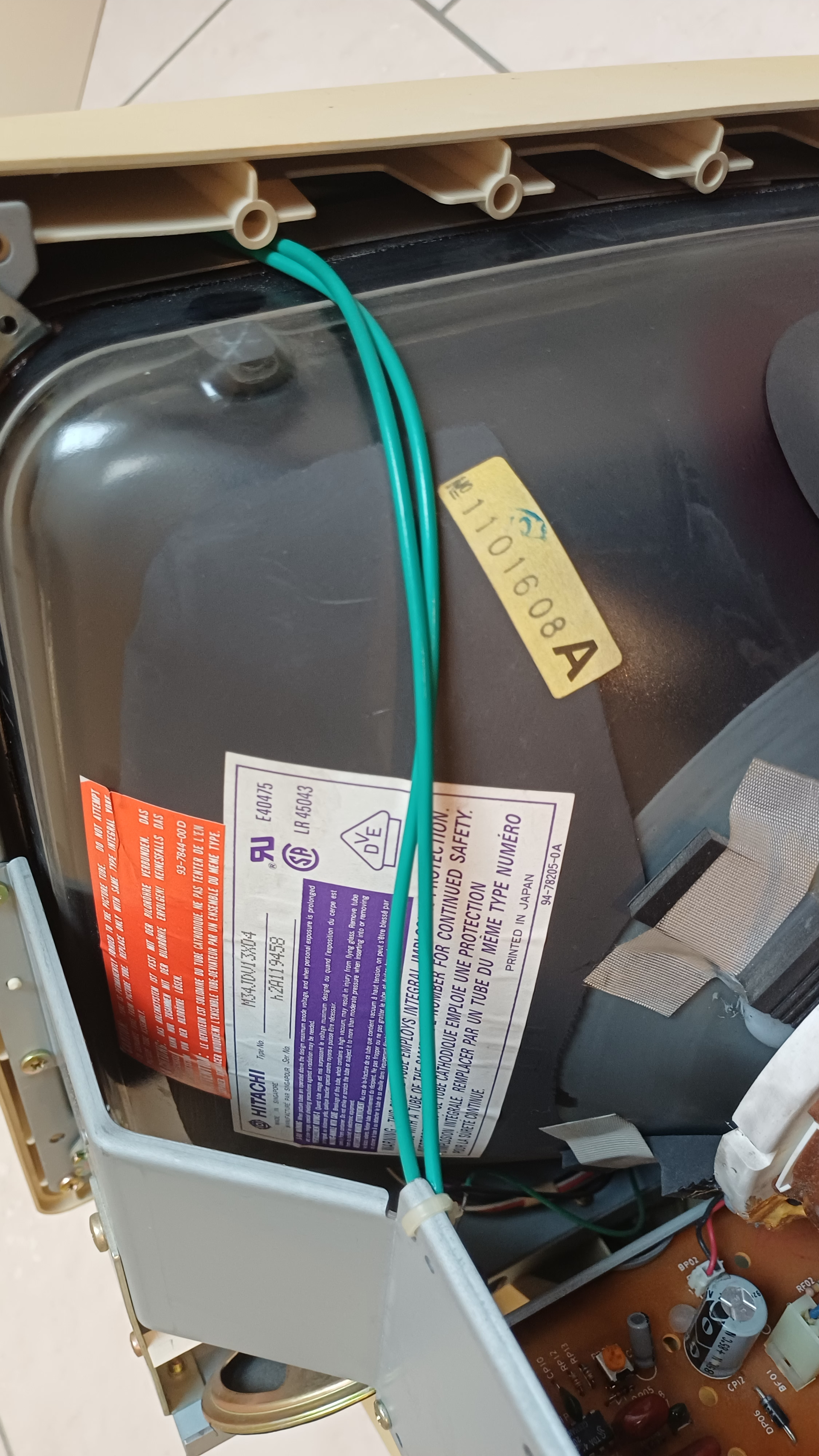 Picture Tube: Mitsubishi 370JWB22 P | Picture tube(s): Hitachi M34JND12X Toshiba E2940B22-GT Flyback: muRATA MHF064-31 (MSH1FBU90) |