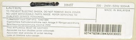 FCC ID (120V version only): BR88YWDM-3014 | dot pitch: 0.42 mm "MODEL NO. 1084S-P" North America "115V AC 50/60Hz 75W" "TYPE 1084S-P VDE" continental Europe "230V~50Hz 75W" VDE=Verband der Elektrotechnik "TYPE 1084S-P BSI" United Kingdom "230V~50Hz 75W" BSI=British Standards Institution "TYPE 1084S-P AU" in Australia "240V±10% AC 50Hz" mfg's model names (220-240V versions only): KH533/30E (1084S-P VDE) KH533/35E (1084S-P BSI) KH533/96E (1084S-P AU) FCC ID (120V version only): BOU9Q21902A (the same as the FCC ID of the 1902A) ![]() |